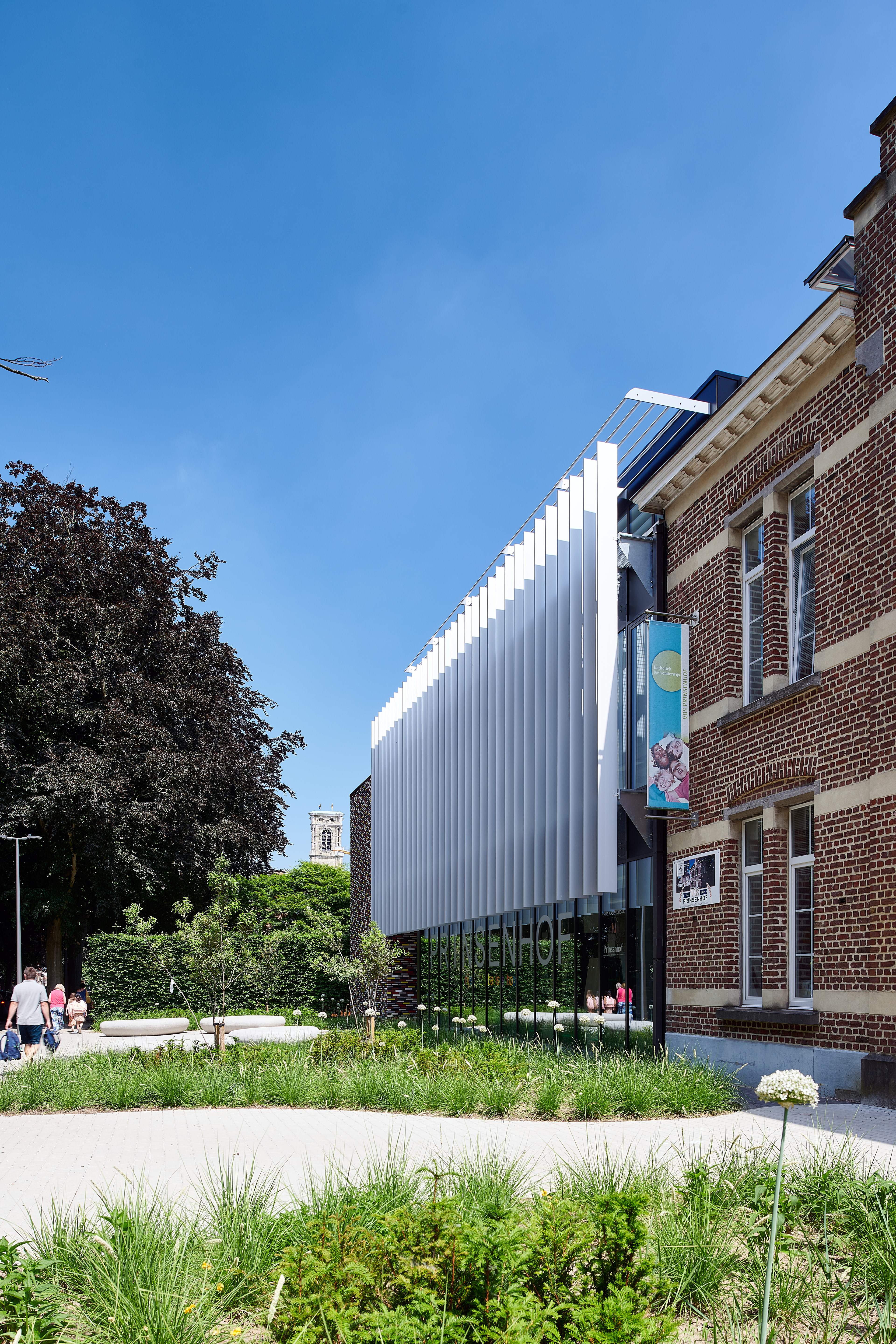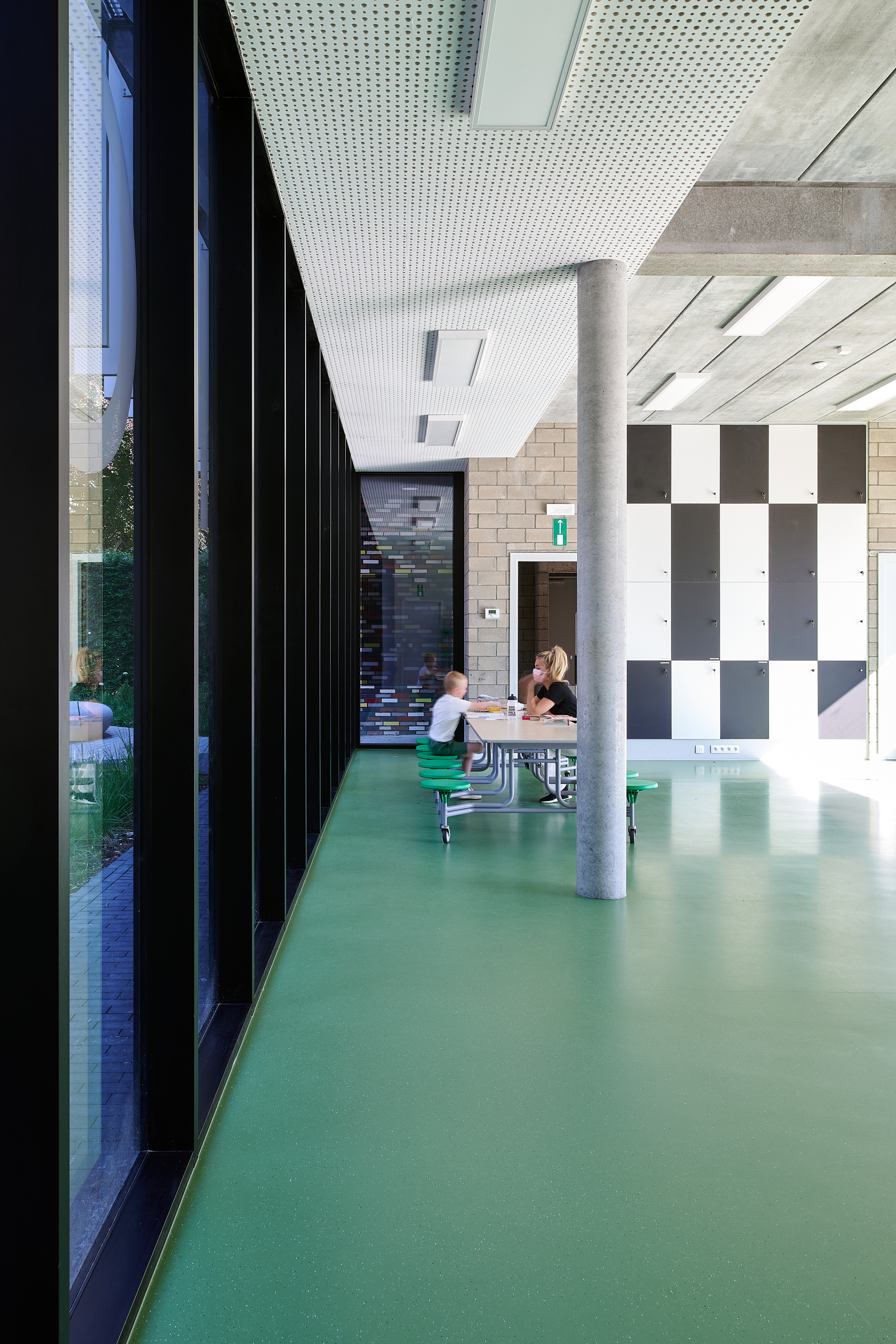 Bouw van een verbindingsgebouw met multifunctionele doeleinden voor een basisschool